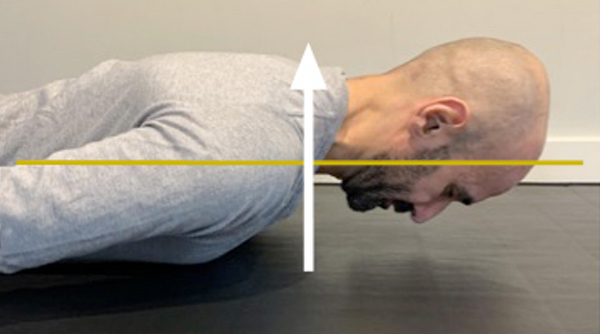 The Cervical “sit-up.”: Stabilising the neck requires activity of the muscles at the front of the neck, which are prone to becoming weak in FHP. Try laying on your back with your head in as neutral a position as is comfortable. Do a gentle chin tuck as described above, but then slowly lift your head off the floor/pillow by sending your chin towards the chest and bring back down with control while maintaining the chin tuck. Do 15-20 reps of these cervical sit-ups, repeat up to 3 times per day; you will feel the muscle activity towards the end of each set of these exercises.